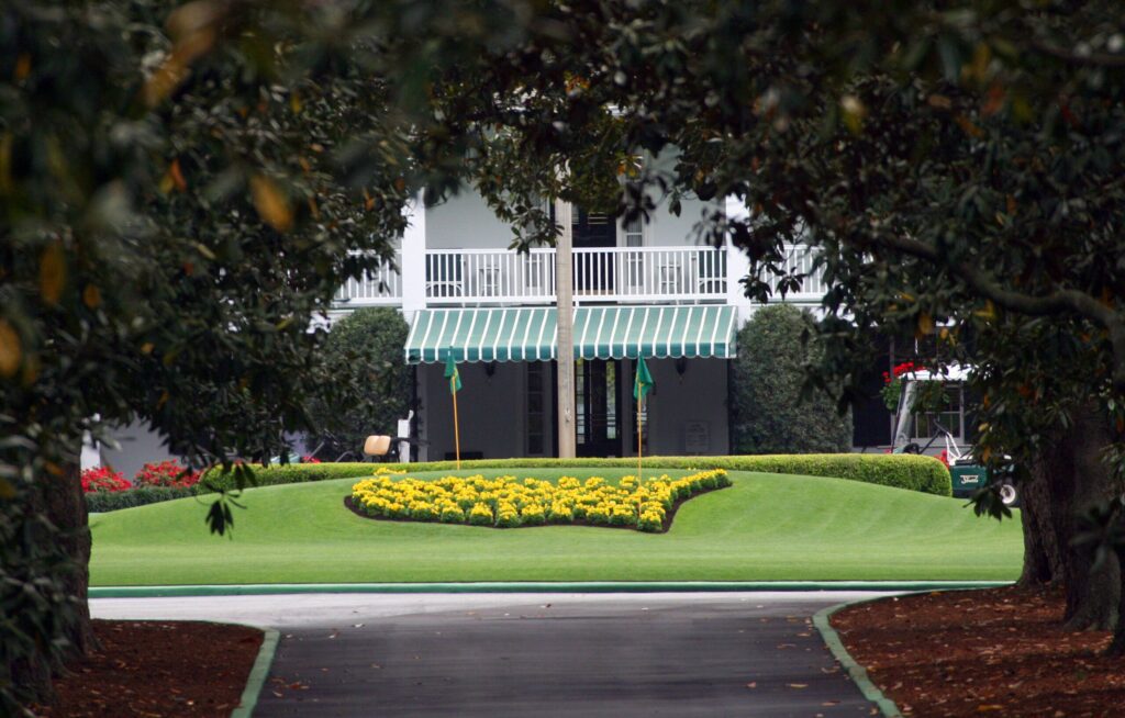 Bildnummer: 02758034 Datum: 01.04.2007 Copyright: imago/Icon SMI Blick auf das Clubhaus des National Golf Club in Augusta entlang der Magnolia Lane, bestehend aus 61 Magnolien - PUBLICATIONxINxGERxSUIxAUTxHUNxONLY (Icon35717763); Vdig, quer, Anlage, Golfanlage, Golfclub, Golfplatz, Baum, Bäume, Magnolie, Magnolien, Allee, Alleenstraße, Weg, Gasse, Straße, Tunnel, Perspektive, Beet, Blumen, Blumenbeet, Klubhaus, Haus, Gebäude, Clubhouse Masters Tournament 2007, PGA Tour Augusta Augusta National Golf Club Golf Herren Einzel USA Totale Randmotiv Pflanzen Sportstätte