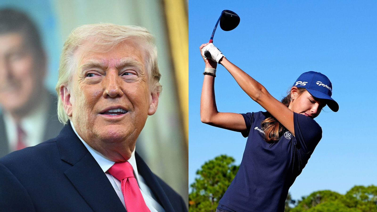 BELLEAIR, FL - NOVEMBER 14: University of Miami commit Kai Trump plays her tee shot on the 14th hole during The Annika driven by Gainbridge at Pelican on November 14, 2025, at the Pelican Golf Club in Belleair, Florida. Photo by Brian Spurlock/Icon Sportswire. GOLF: NOV 14 LPGA, Golf Damen The ANNIKA EDITORIAL USE ONLY Icon2511145