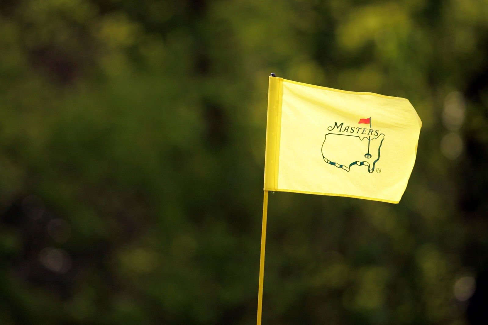 The Augusta National emblem, first used in 1934 when the event was still the Augusta National Invitation Tournament, shows a yellow outline of the United States with a red flag planted over Georgia.